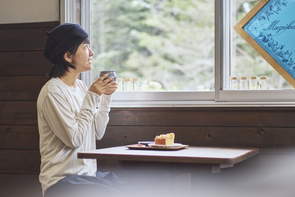 そして時間を気にせず麦草ヒュッテでおやつタイム。この日いただいたのは、「気まぐれスイーツセット(1,350円)」。旬のフルーツをとり入れたケーキを麦草ヒュッテのスタッフさんが手作りしていて、香り高い麦草オリジナルブレンドコーヒーとマッチする。