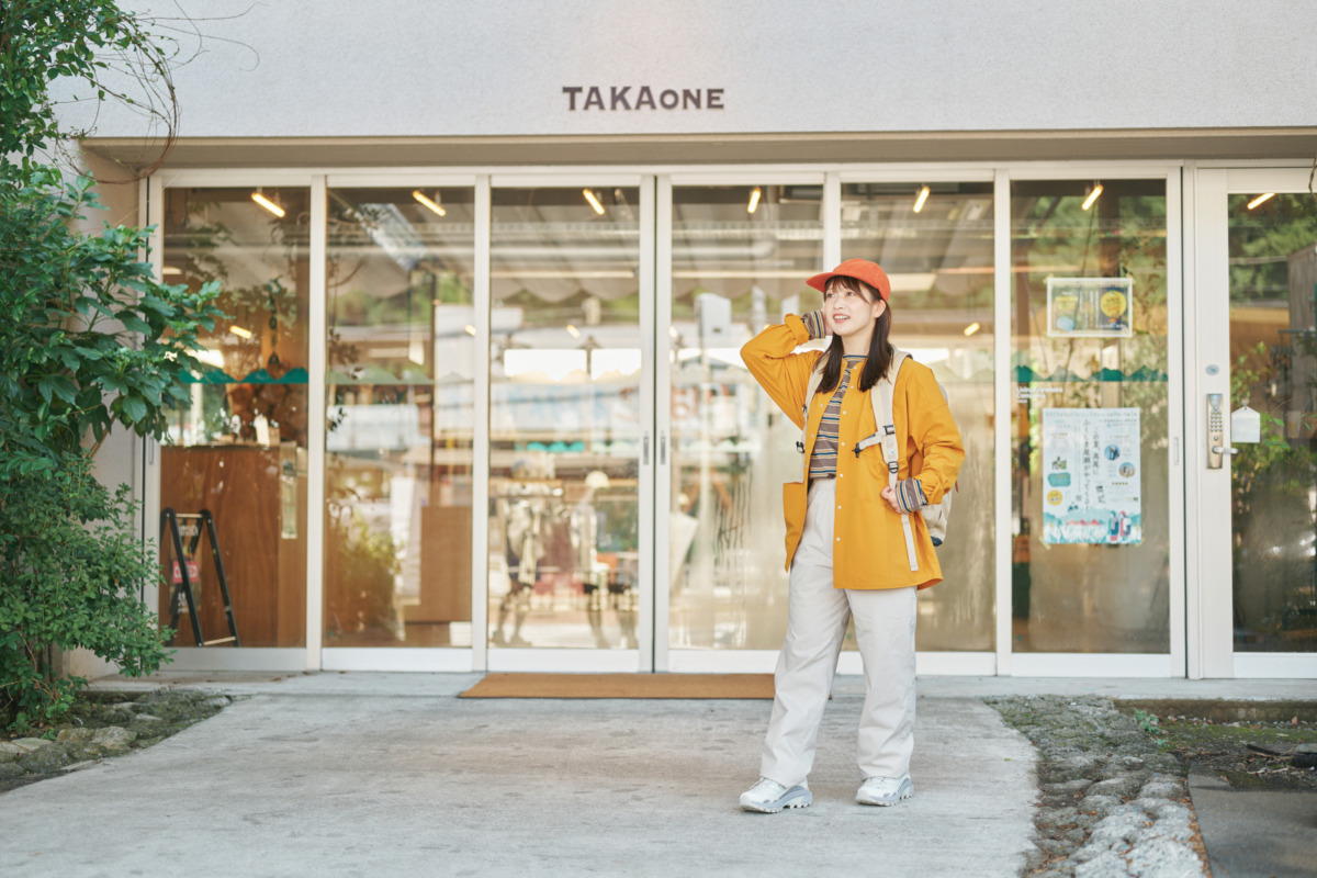 今回の主役は、かわり芽のリトルマウンテンパンツ。ゆったりとした女性らしいシルエットが特長で、ストレッチ性に優れるため足上げはスムーズ。ショートとロングの2サイズ展開なので、低身長の女性も選びやすいのが魅力です。ゆったりとしたトップスと合わせるときは、前側だけをインするとバランスがよく、ベレー帽でかわいさをプラス。日常にも取り入れられる一着です。