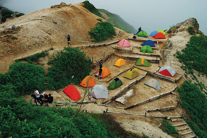 ▲北アルプスのなかでもいち早くWeb予約を始めていた燕山荘。コロナ禍でテント場も予約必須に。