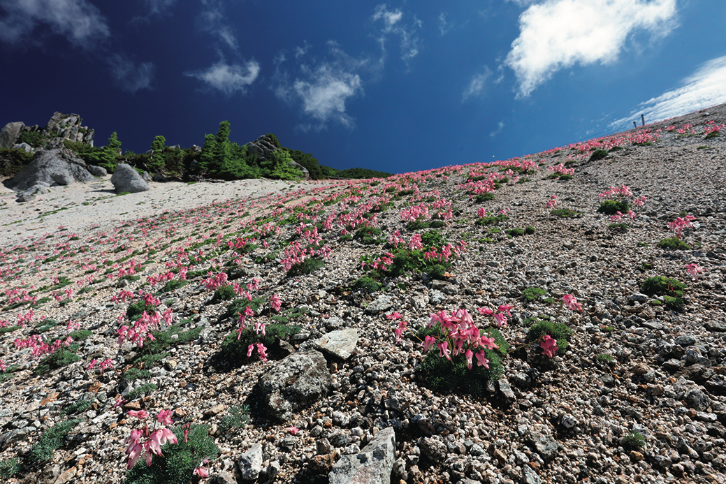 ▲「自然のすばらしさを伝えるのが自分の役割」と赤沼さん。山小屋経営の傍ら、周辺は国内有数のコマクサの群生地を守るため、長年ロープや木杭を設置してきた。その成果でコマクサは増え、ライチョウも頻繁に姿を見せるように。