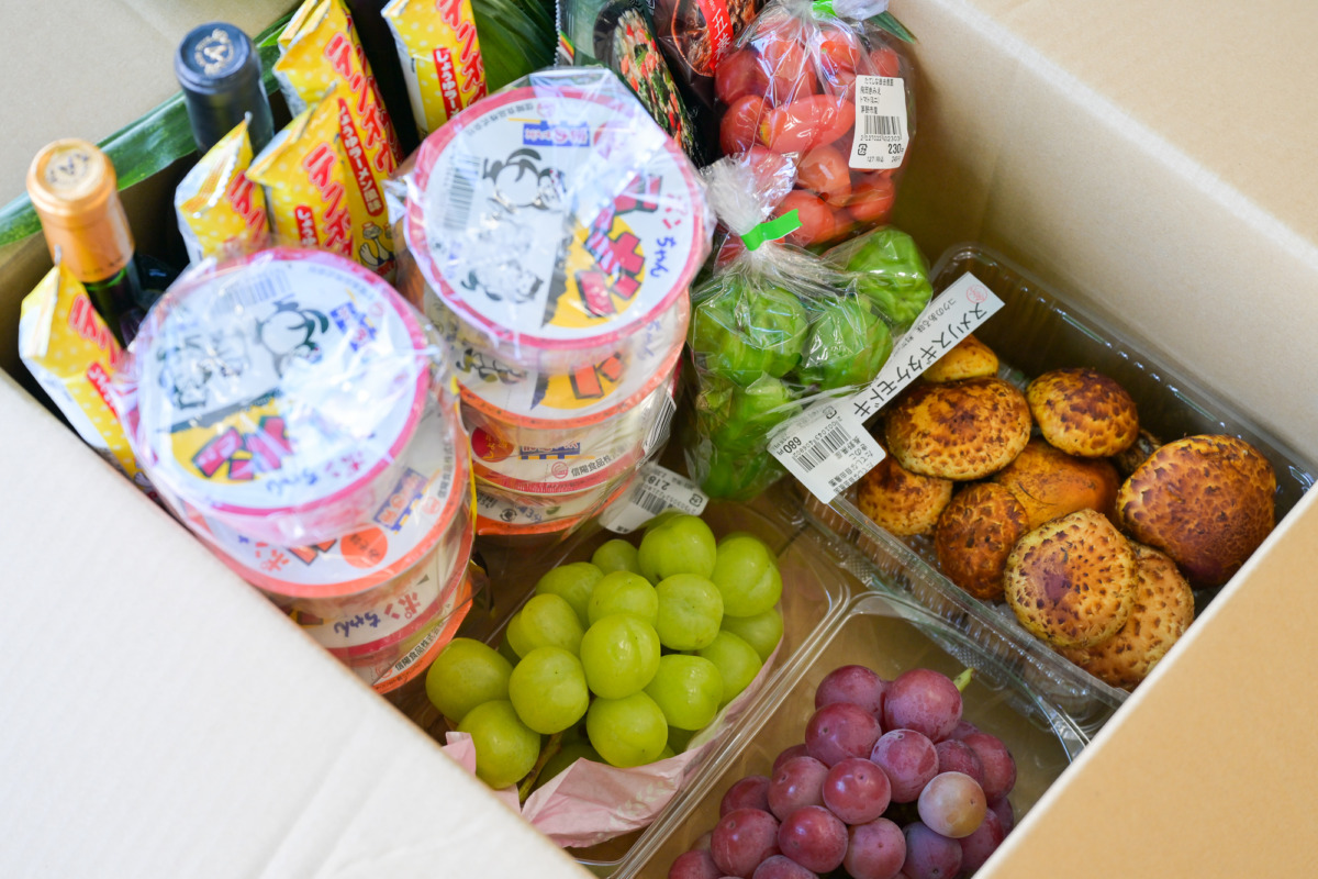 旬のブドウやキノコ、長野のソウルフード「ポンちゃんラーメン」などを買い込んだ