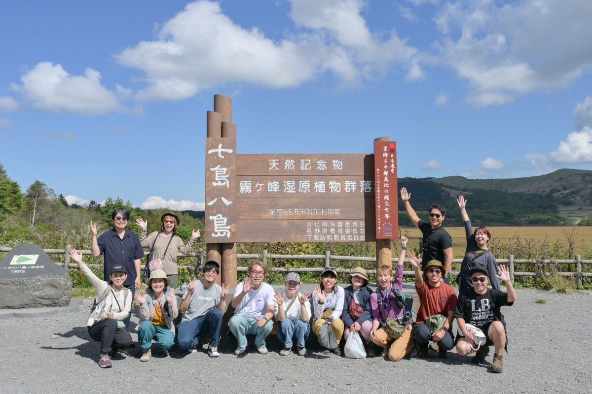 途中、生産者直売所「たてしな自由農園」で地元の果物やおやつを買い込み、八島湿原で自己紹介とランチタイム。標高約1,630mの大草原に、心地よい風が吹き抜けていました。