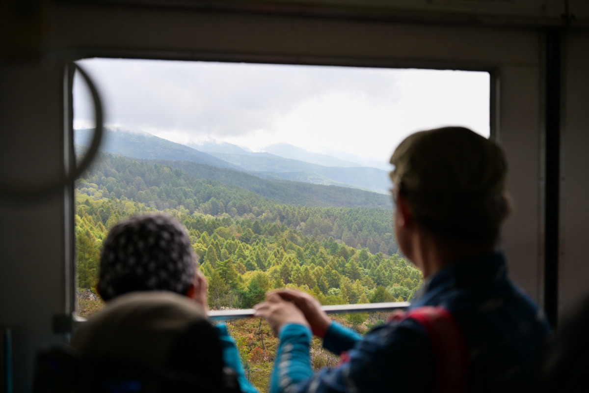 翌朝、一行は北八ヶ岳ロープウェイで山頂駅(標高約2,237m)へ。