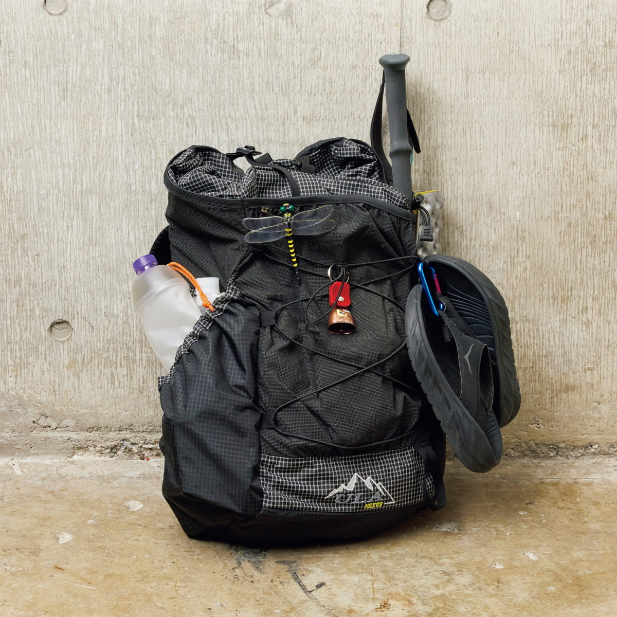アイテム選びは「山でも自分のテンションが上がるものであること」を重視。ウエアや道具はもちろん、ちょっとした小物も自分の好きなカラーを選んだり、全部合わせ持ったときの姿を想像するなど、普段の服とおなじように道具選びをしているそう。気に入ったものは永く大切に使いたくなるし、なにより山に行くことがさらに楽しみになるからという思いから。