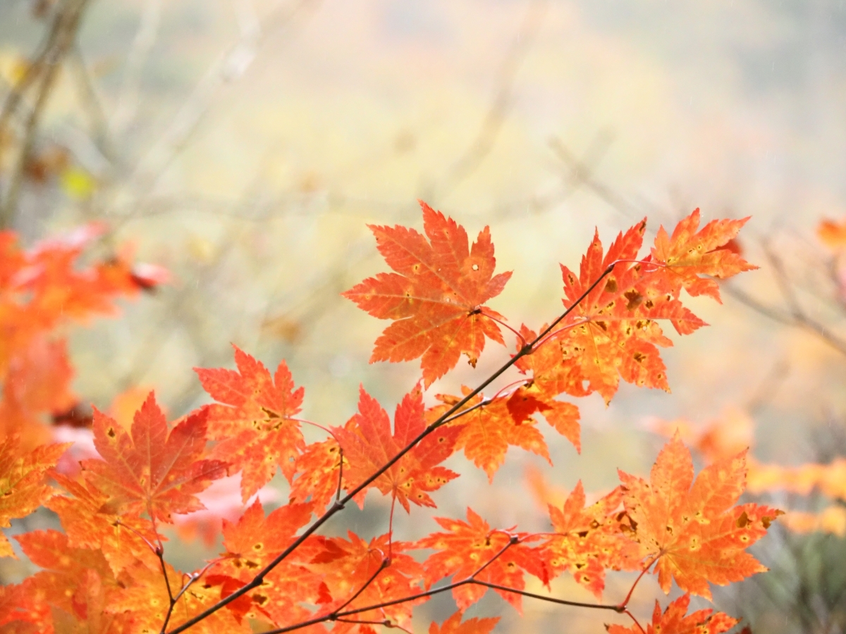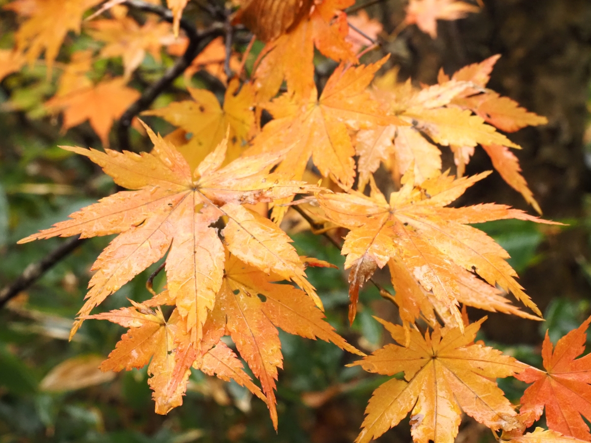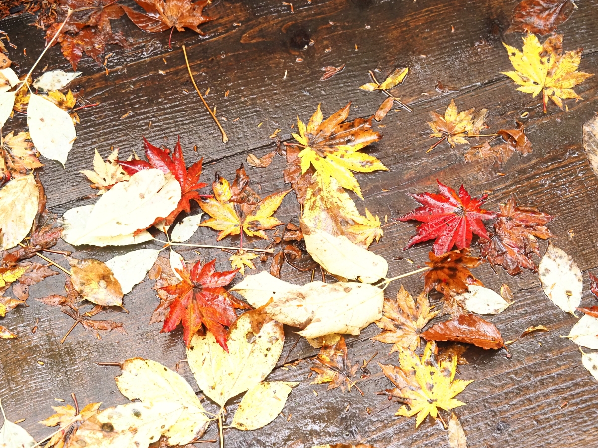 雨の影響で落ちてしまった葉っぱもあったけれど、まだまだ美しく紅葉した葉もたくさん。