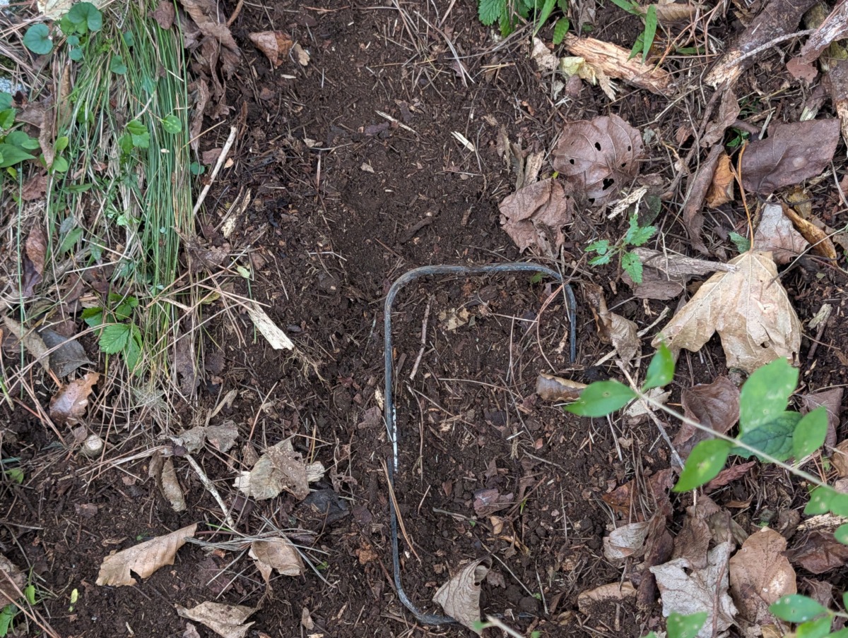 ▲けもの道にくくりわなを置き、木の葉や土で隠す