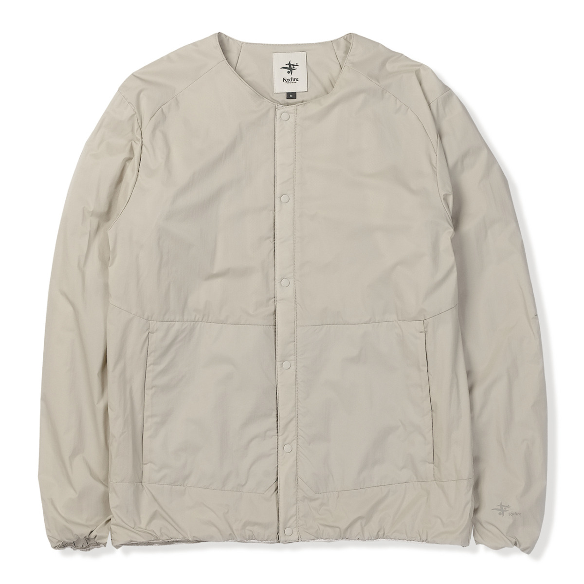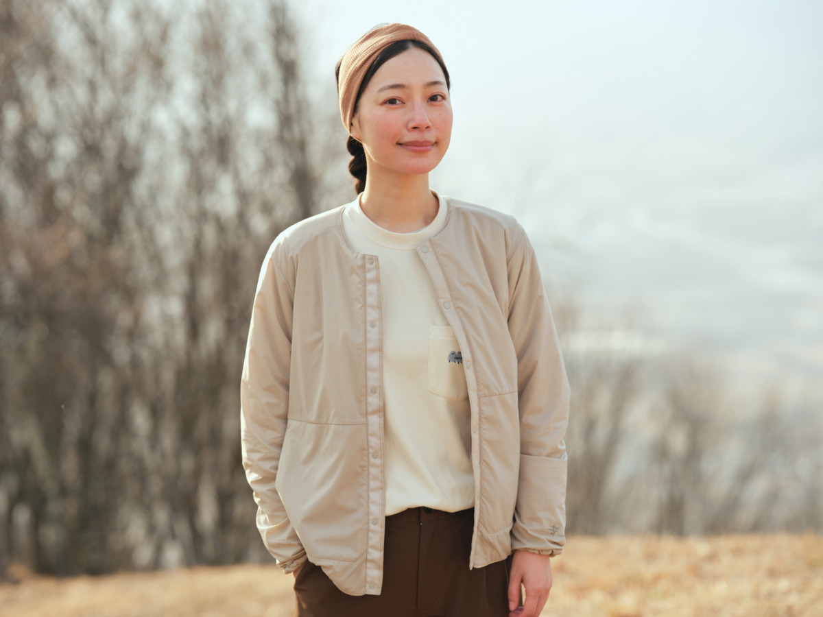 この「OCTA」の素材を使ったフォックスファイヤーのカーディガンは、普段着使いもできるシンプルなノーカラーのデザイン。色もベージュ、カーキ、ブラックなど合わせやすいカラーばかりで、山にも馴染みます。街でのおすすめコーディネートは、デニムパンツの上にワンピースを重ねて上からこのジャケットを羽織った重ね着スタイル。