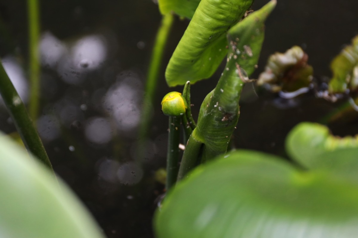 玄人向け……と言いつつも、やはりヒツジグサ人気の足元には遠く及ばない、彼女たち。ふと池の中を見ると、今から花を咲かせようと健気にがんばるコウホネのつぼみが。ズブズブと闇落ちすることなく、必死にひと花咲かせようとする姿を見てつくづく感じたのは、水生植物代表として、少しでも人気が出てくれたら、という思い。がんばれ、がんばるんだ~、コウホネ!!