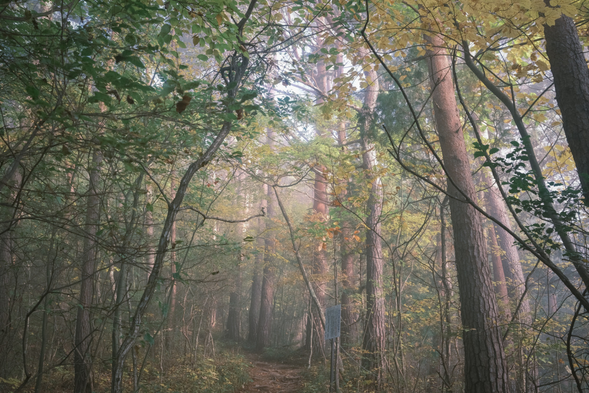 すぐそこに冬の気配を感じるこの日の早朝気温は3度。ひんやりとした空気の中、あたりは霧に包まれていて「まさに霧訪山〜!」とひとりテンションが上がります。