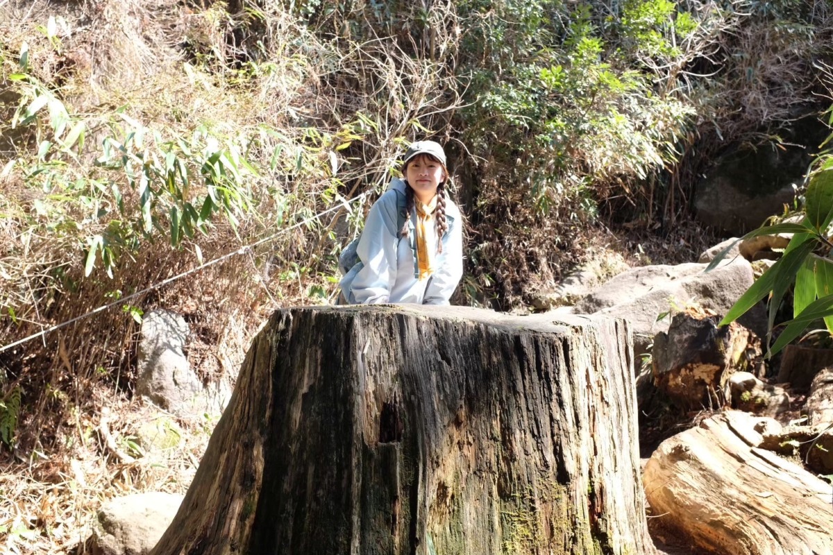 木々が揺れる音を聞きながら、途中で大きな切り株を発見。「この木はどのくらい前からここにいたんだろう」と想像を膨らませるのも楽しい時間です。