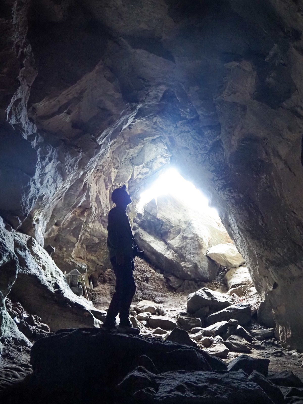 弁天財の洞窟はとても広く、30人ほどのメンバーが仄暗い洞窟に潜伏するようすに、柏倉さんは一揆の集会のようだと呟いた。大内さんを筆頭に祠に一礼し、士気を高めた我々は次のポイントへ移動する。