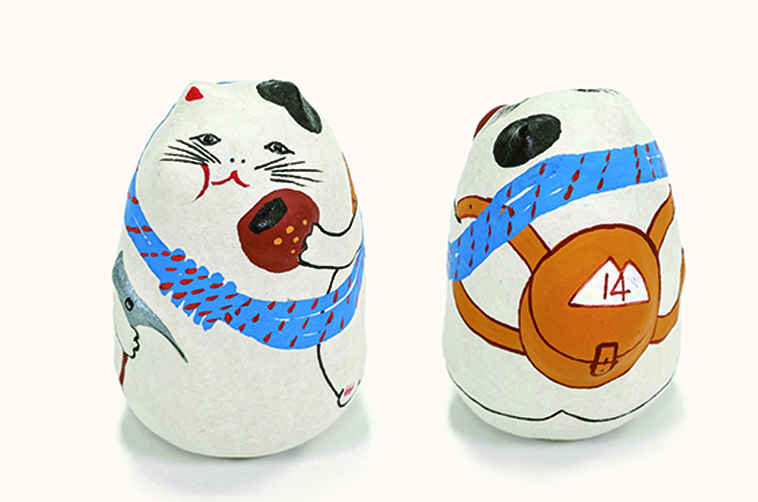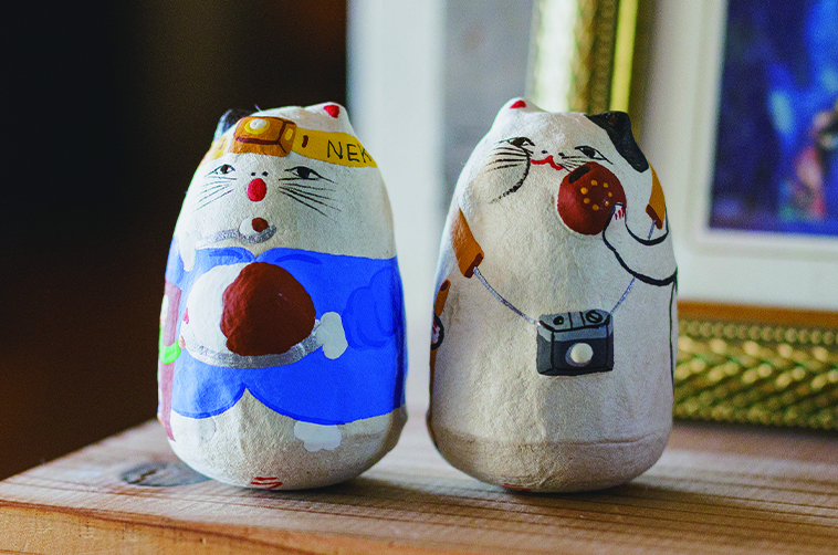 外側から紙を重ねる一般的な張り子とは異なり、細かく表現ができるそう。この静かなこだわりが、猫たちに柔らかな温度を宿しています。