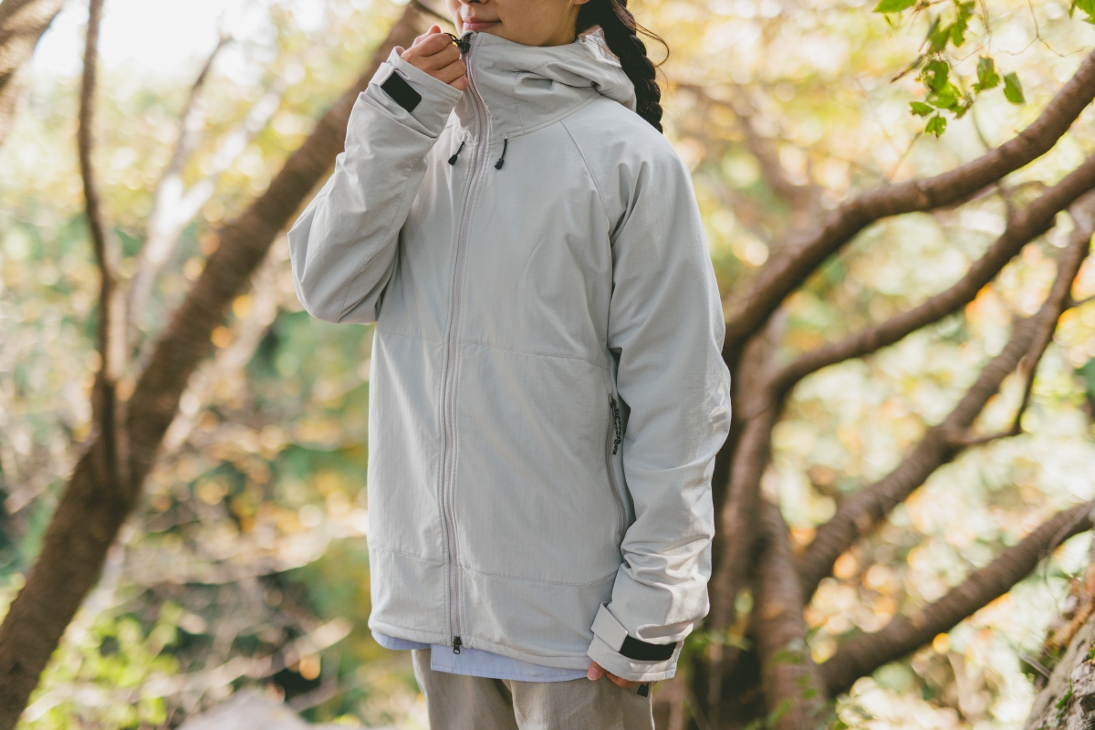 裏地に起毛させたウール混フリース生地を採用した、保温性に優れるソフトシェルジャケット。前後差のある裾でお尻周りもカバー。上下に開くフロントジッパーでウエア内の換気も簡単に。適度な通気性のほか、4方向へのストレッチ性、撥水性、防風性、透湿性をもち併せるため、冬のアクティビティに一枚あると重宝する。