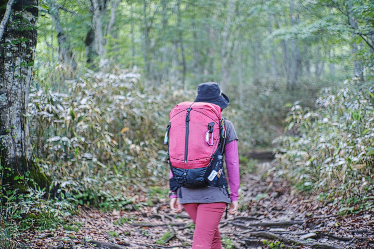 今年の夏は、ワタスゲが当たり年だと聞いてそわそわ。あの白いぽわぽわが大好きな私は、尾瀬のアヤメ平を目指しました。登山のスタートは鳩待峠。山ノ鼻に下る道ではなく、休憩舎の裏側から登山道に入ります。「鳩待ち通り」と呼ばれるこの道を歩く人は少なくて、とても静かです。