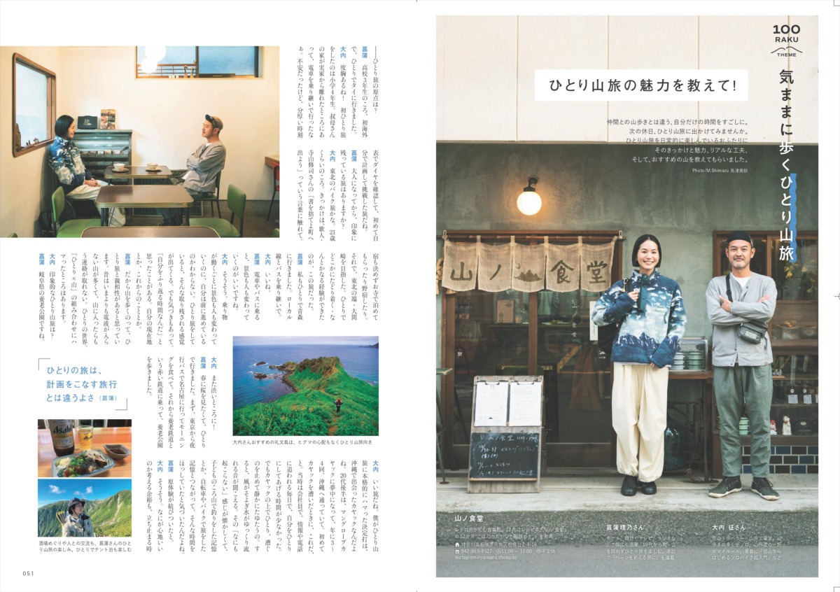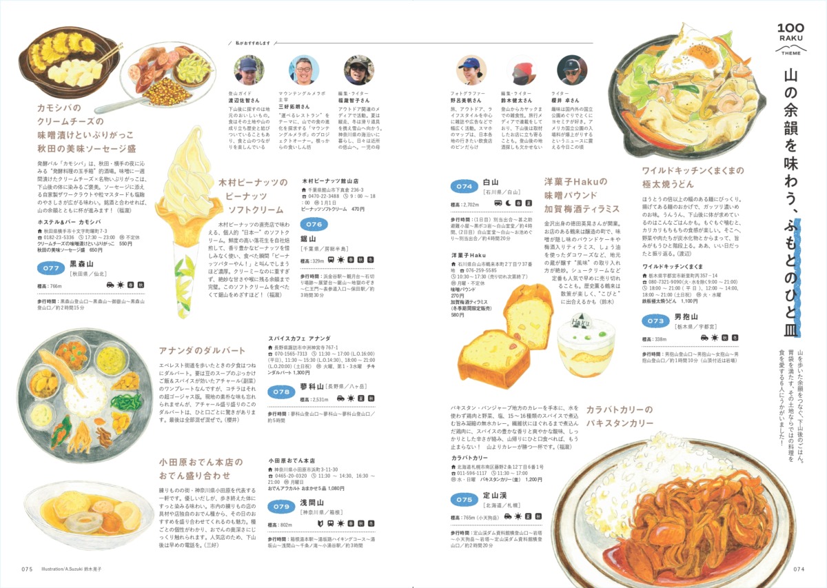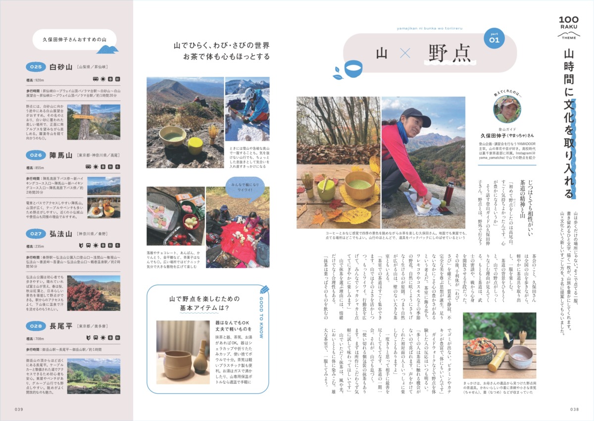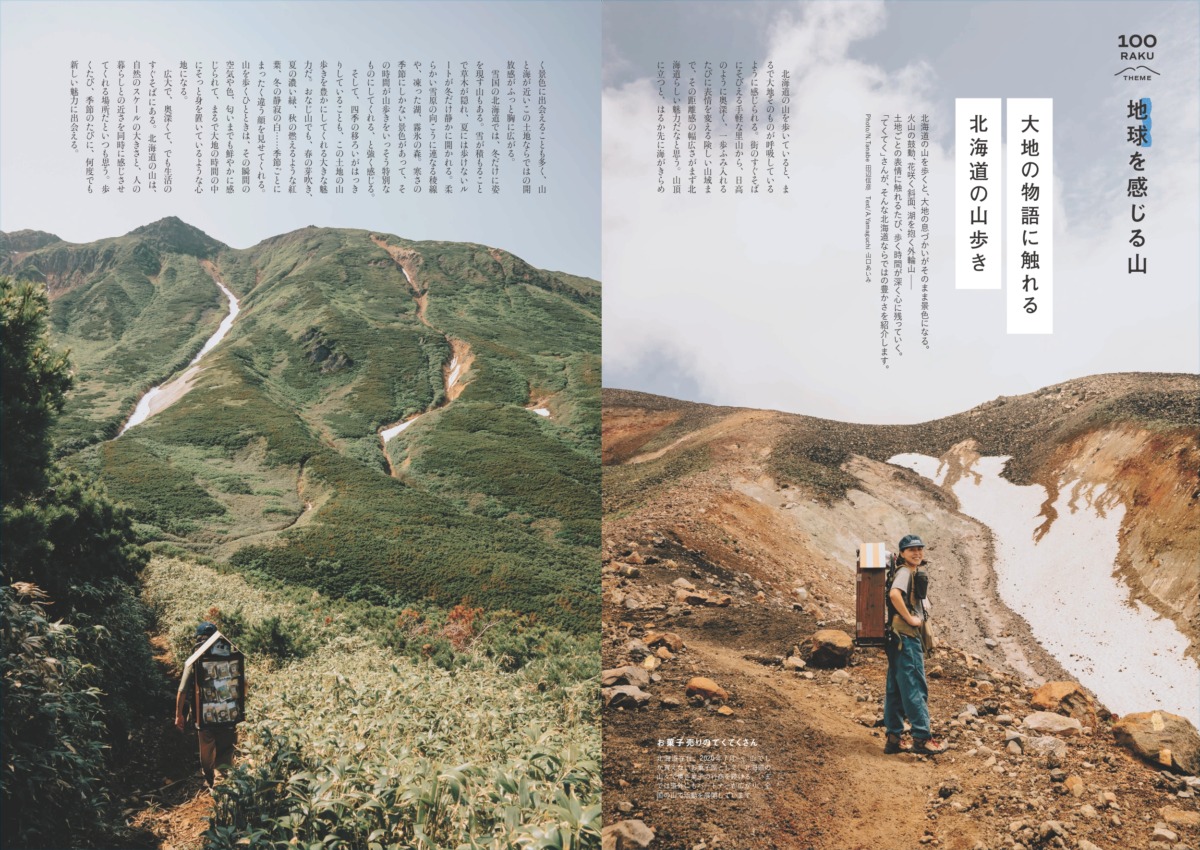 みなさんにとっての“山の楽しみ”はなんですか?今回の「100楽山」は個性豊かです。歩きなれた山も、楽しみ方を変えてみたらまったく異なる山に見えてくる。ページをめくりながら、自分のスタイルに合うお気に入りのひと山を見つけてみてください。