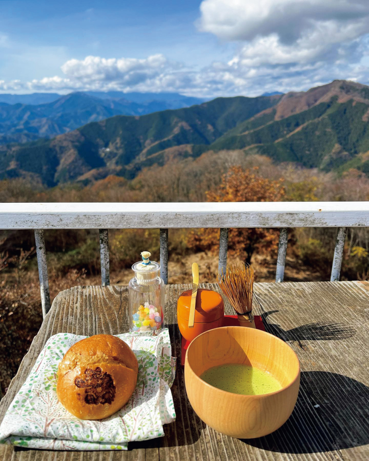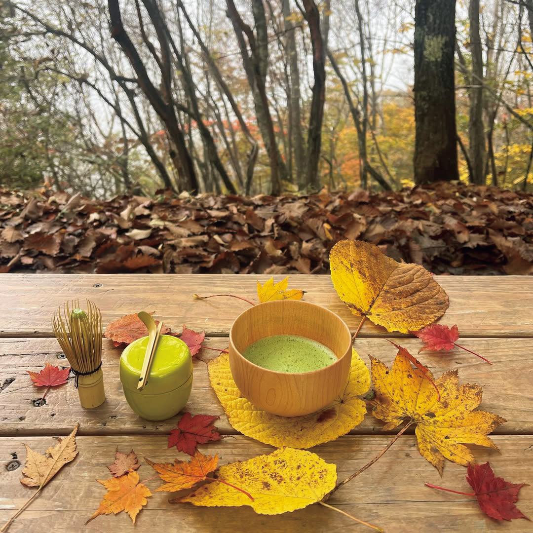山でいただく抹茶は、風や光、においとともに体に染みこむ。雄大な茶室で、一服してみよう。