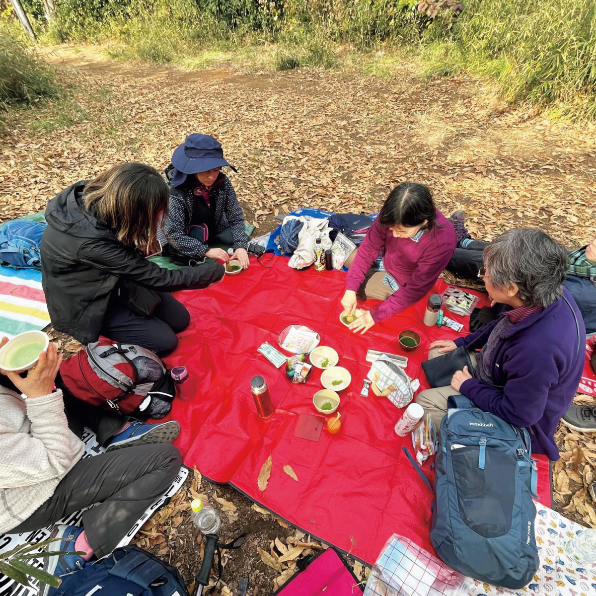 「茶室での茶道はすごく集中できます。山ではそのよさを活かしつつ、もっとワイワイ。行動食をげて、みんなでシャカシャカと点ててにぎやかに楽しみます」