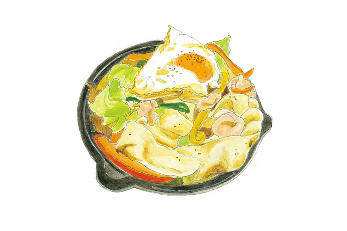 ほうとうの倍以上の幅のある麺にびっくり。揚げてある麺のおかげで、ガッツリ濃いめのお味。うんうん、下山後に体が求めているのはこんなごはんかも。もぐもぐ噛むと、カリカリもちもちの食感が楽しい。そこへ、野菜や肉たちが炭水化物とからまって、旨みがもうひと階段上る。ああ、いい日だったと振り返る。(渡辺)