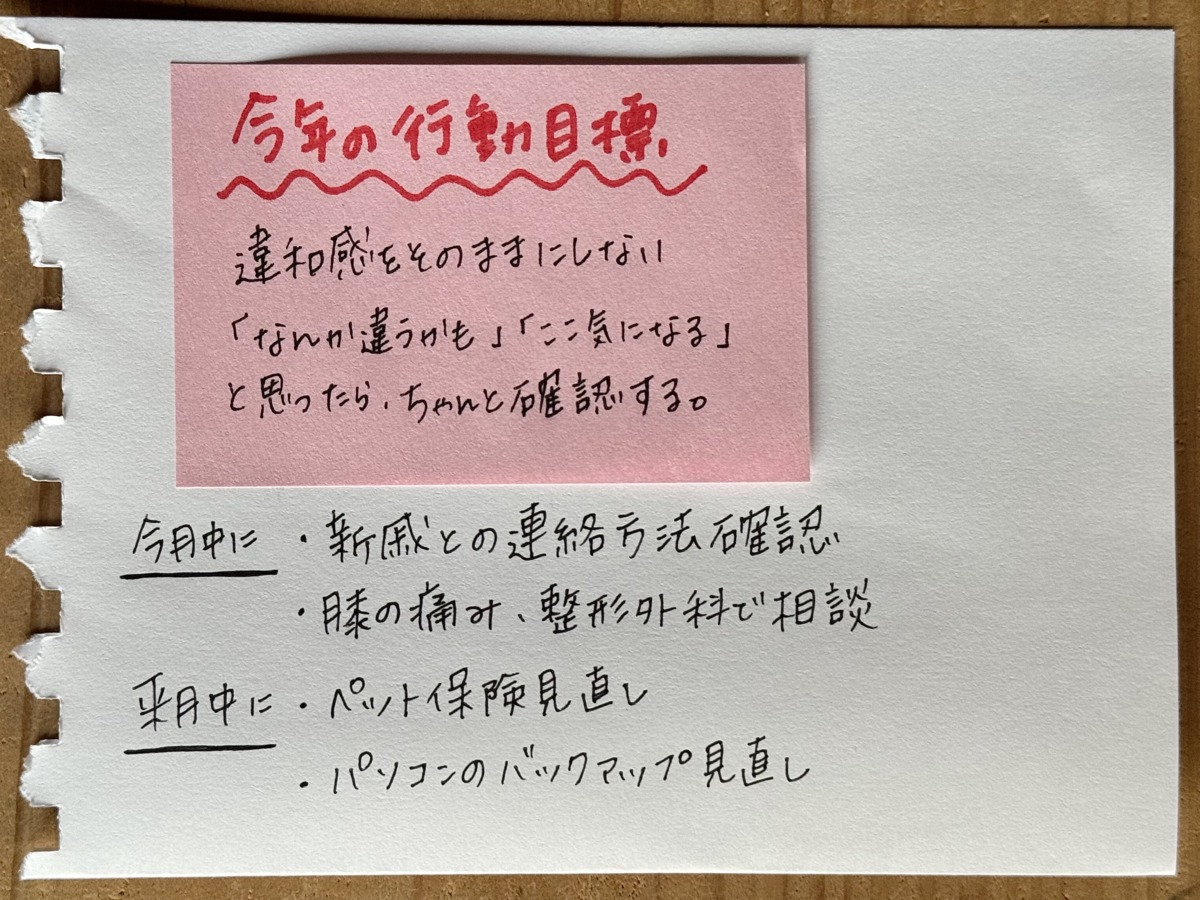 例えば、私は今年「違和感をそのままにしない」という目標を立てました。日々の暮らしの中で「なんか違うかも」「これ、気になるな」と感じたのに、そのままにして、あとで「やっておけばよかった」と思うことがよくあったからです。