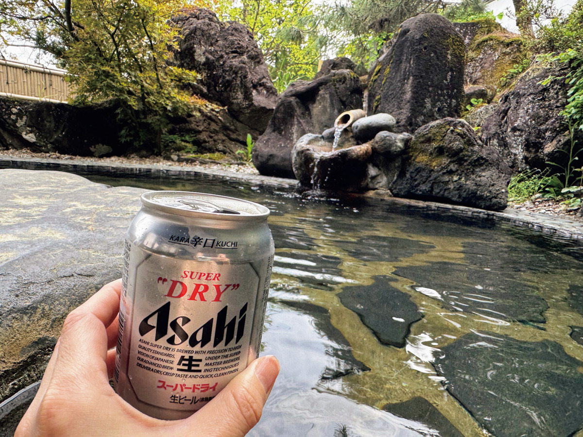 坂戸山登山の前日には六日町温泉の「魚沼の隠れ温泉 くつろぎ庵」に宿泊。全3室の隠れ家のような宿で、源泉かけ流しで露天風呂の開放感も抜群。浴室は貸切利用も可能で、ビールやソフトドリンク、アイスなど(一部有料)を露天風呂に浸かりながら楽しめるサービスも。夕食では裏の山で採れた山菜が、天ぷらや小鉢のおつまみとなって並び、魚沼の地酒の飲み比べとともに味わった。朝食では、炊きたての魚沼産コシヒカリをお腹いっぱいいただいた。