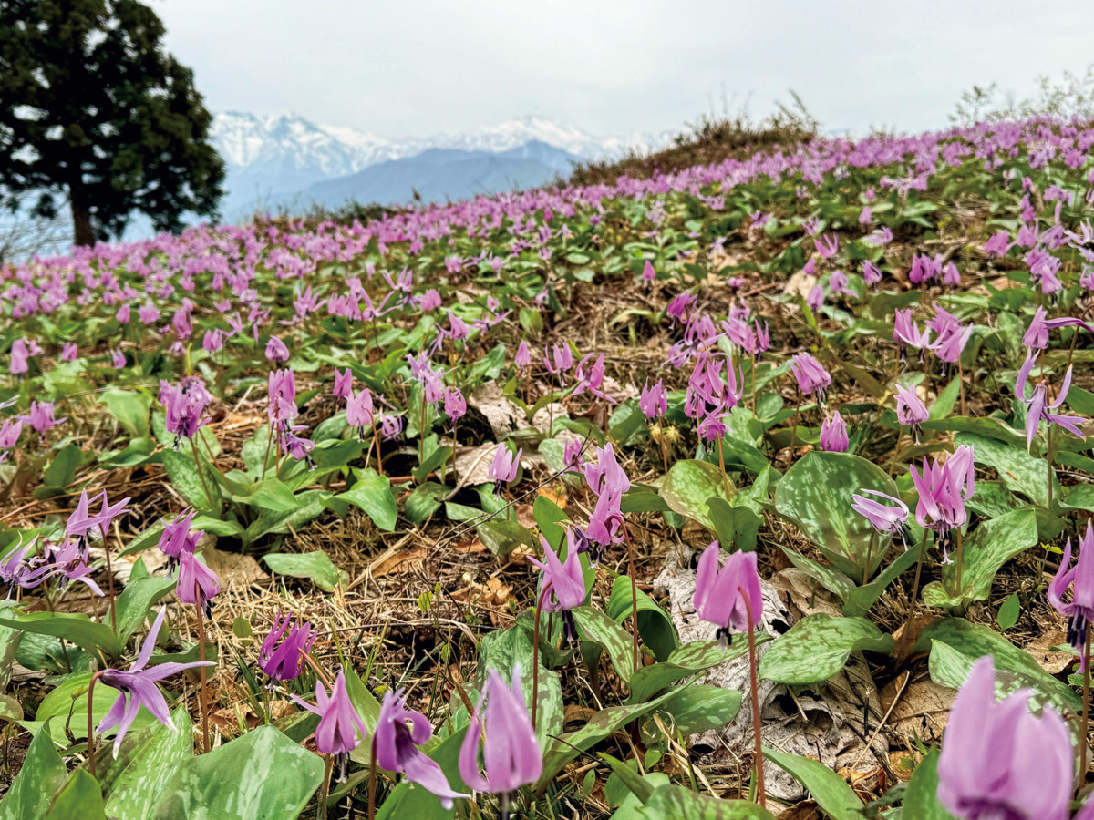 登山と「温泉宿への宿泊」を絡めたひとり旅が大好きな私がご紹介したいのは、新潟県南魚沼市の標高634mの低山、坂戸山。よく登られている「薬師尾根コース」は整備されていてあちこちでお花も楽しめる。山頂直下に咲くカタクリの花が見ごろを迎える、4月中旬ごろの登山がとくにおすすめだ。