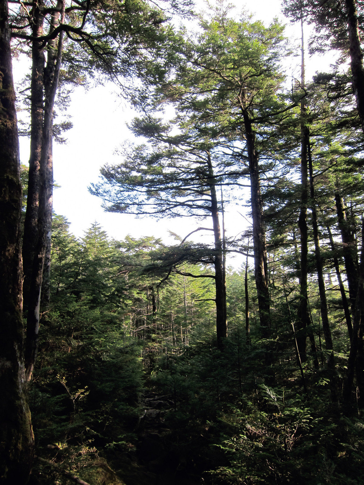 丸山にピストンし雨池をめざし峠から八丁平に出る。案の定この地味なコースに人影はなく、森に包まれて山の午後を堪能できるはずだった。が、たまにすれ違う登山者に小動物のかさこそ音にいちいちびくつき、全行程ほとんど小走りで、雨池でも一瞬立ち止まっただけで標高差300mを10分で駆け上がり、縞枯山荘まで来たときは心底ほっとした。それでも針葉樹の森の澄んだ香りや緑の色の深さは覚えている。