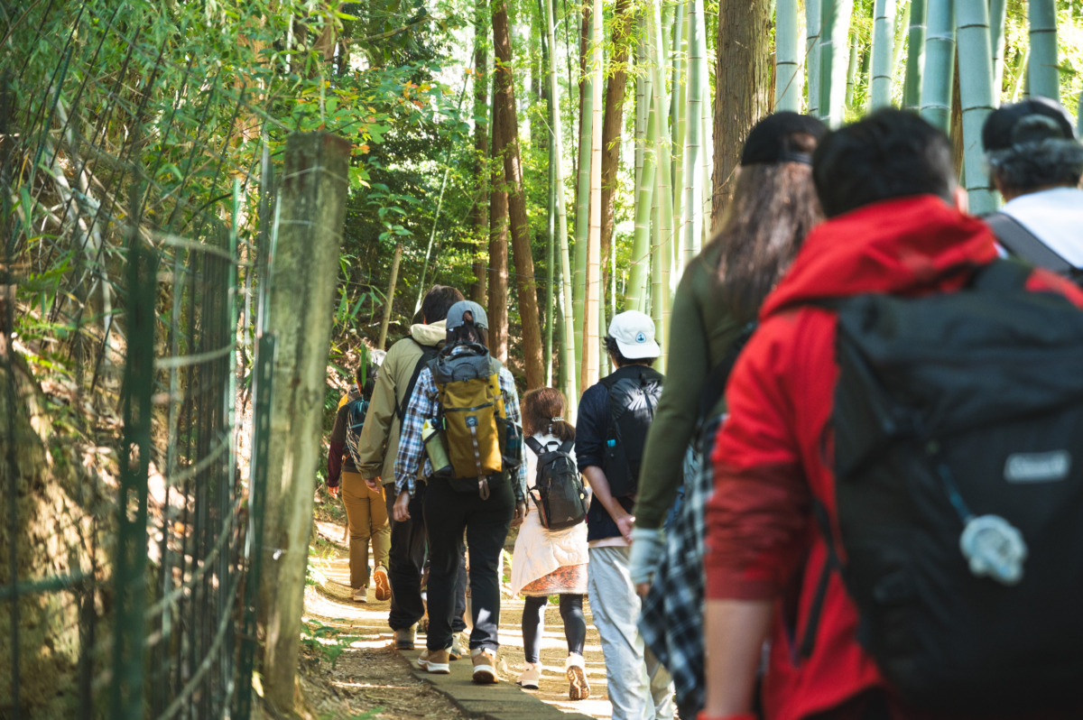 やがて道はしっとりとした竹林へ。風に揺れる竹同士がぶつかる音や、足元でカサリと鳴る落ち葉の感触。町のすぐそばにありながら、日常からふっと切り離されるような心地よさに包まれます。