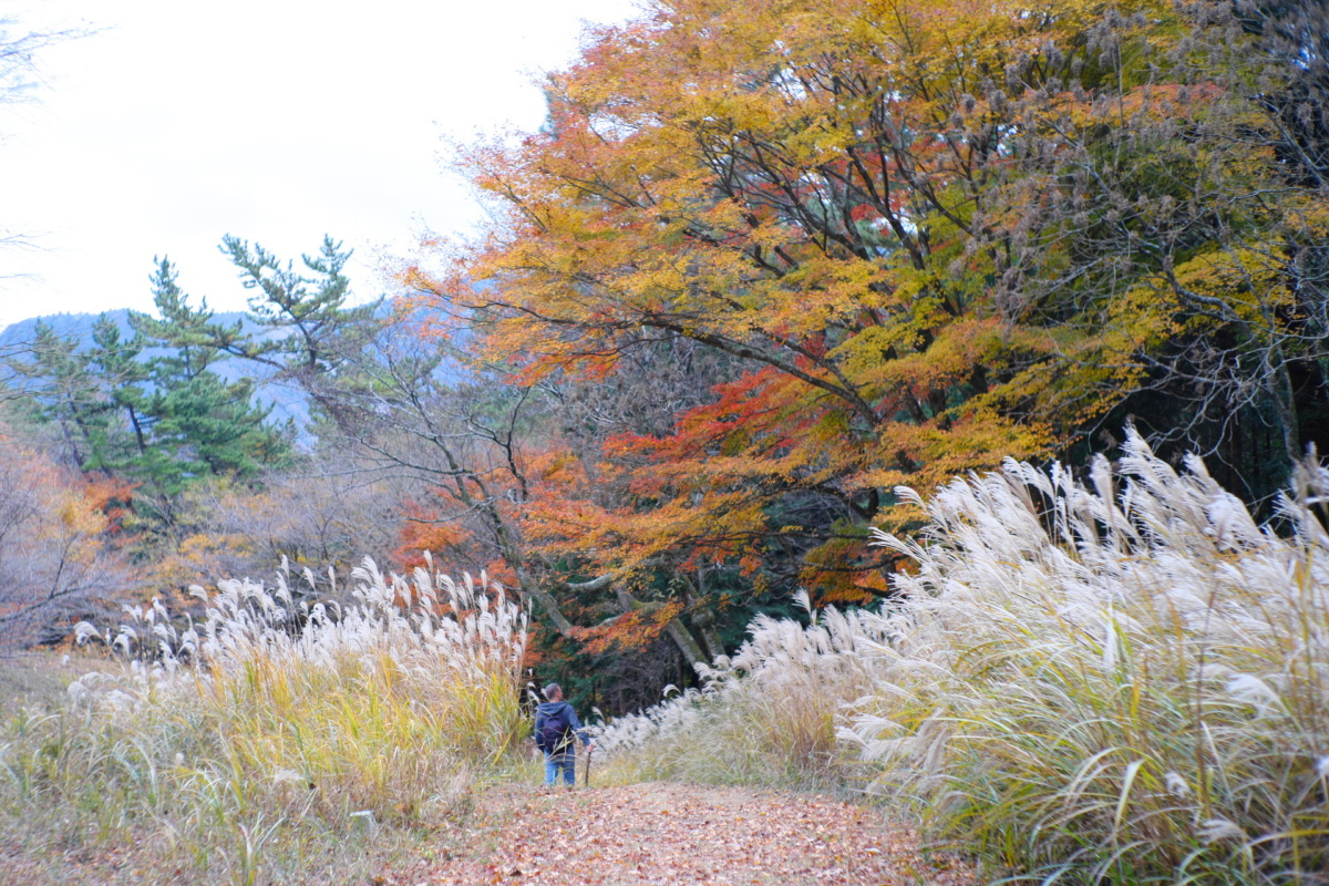 途中、ススキに囲まれたところがあり、秋の風景を満喫。フォトスポットがたくさんあるので、仲間のシャッターが止まりません。コースタイムを多めに見積もっておいたほうが良さそうですね。