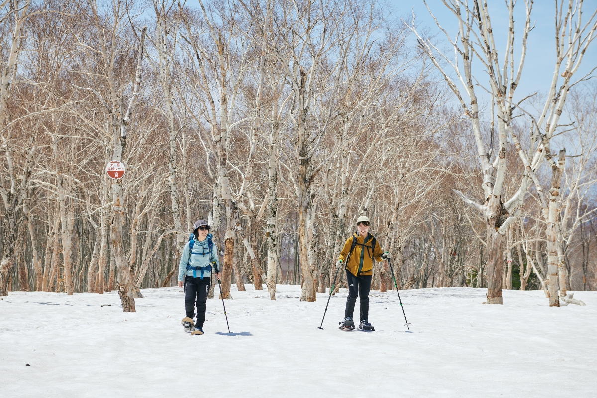安比高原スキー場を拠点に、リフトを使った展望コースや山麓のブナ林、広々とした雪原を体力に合わせて歩ける。春でもたっぷりの雪を満喫できるエリア。スキー場主催のガイドツアーやスノーシューレンタルあり。