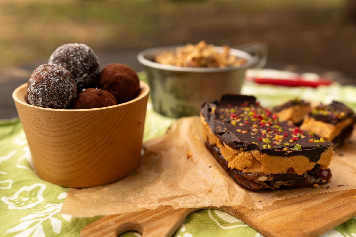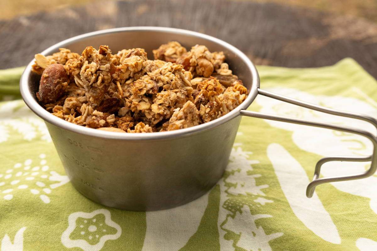 グルテンフリーシュガーフリー。朝ごはんにもおやつにも良し、カリカリの食感も山ではうれしい。混ぜてオーブンで焼くだけ。