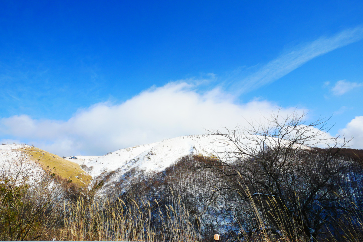 鉢を伏せたような山容が名前の由来。車道をくねくね進んだ先にドーンと鉢伏山は姿を見せてくれます。どこがピークかはっきりわからないような丸くおだやかな形に、優しさを感じました。