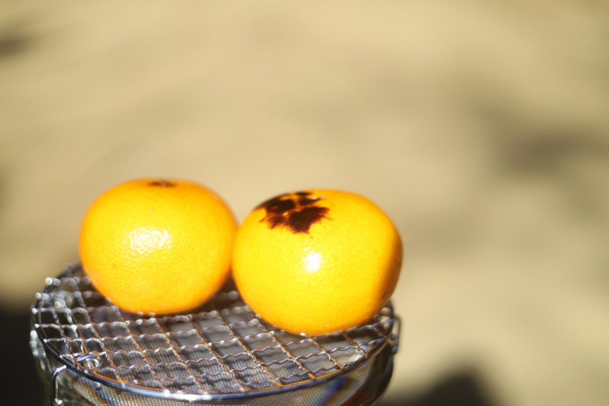 今年の冬は気温が高いとはいえ、やはりお腹は冷えますよね。縦走中の「小腹すき」対策に、焼きみかんを作りました。みかんは焼くと甘みがぐっと増すんです。皮に焦げ目がつくくらいしっかり焼くと、スモーキーな香りと甘みたっぷりのジューシーな味わいが楽しめて最高です!