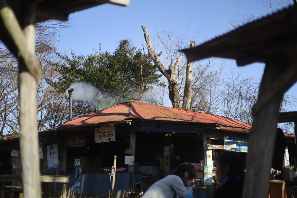 陣馬山に戻ってからは、昼食に「陣馬うどん(800円)」をいただきました!山菜たっぷりで体も温まり、大満足。