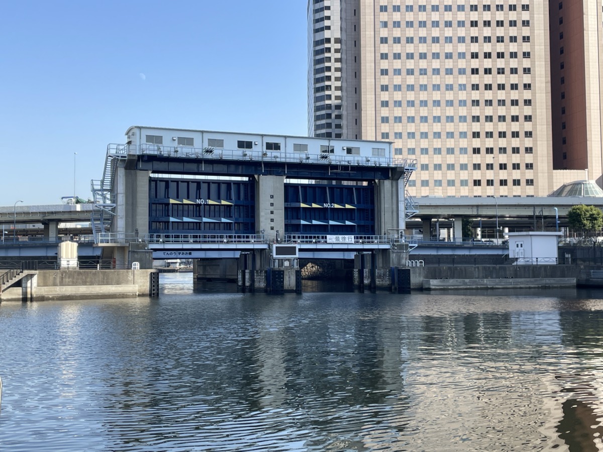 東京湾ウォーターフロントと呼ばれるロケーションに恵まれたエリア。東京は運河が多い町なのです。この天王洲運河は目黒川と合流。天王洲水門を眺めながら川沿いを歩くのは気持ちがいい。