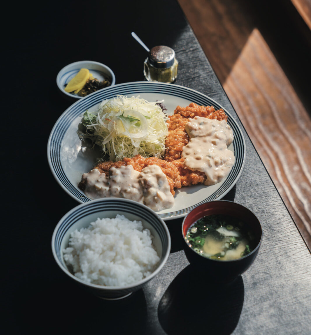 ▼下山後の胃袋をつかむ「ボリューム満点チキン南蛮」。店主の山愛が詰まった一皿の詳細は『ランドネ』最新号で。