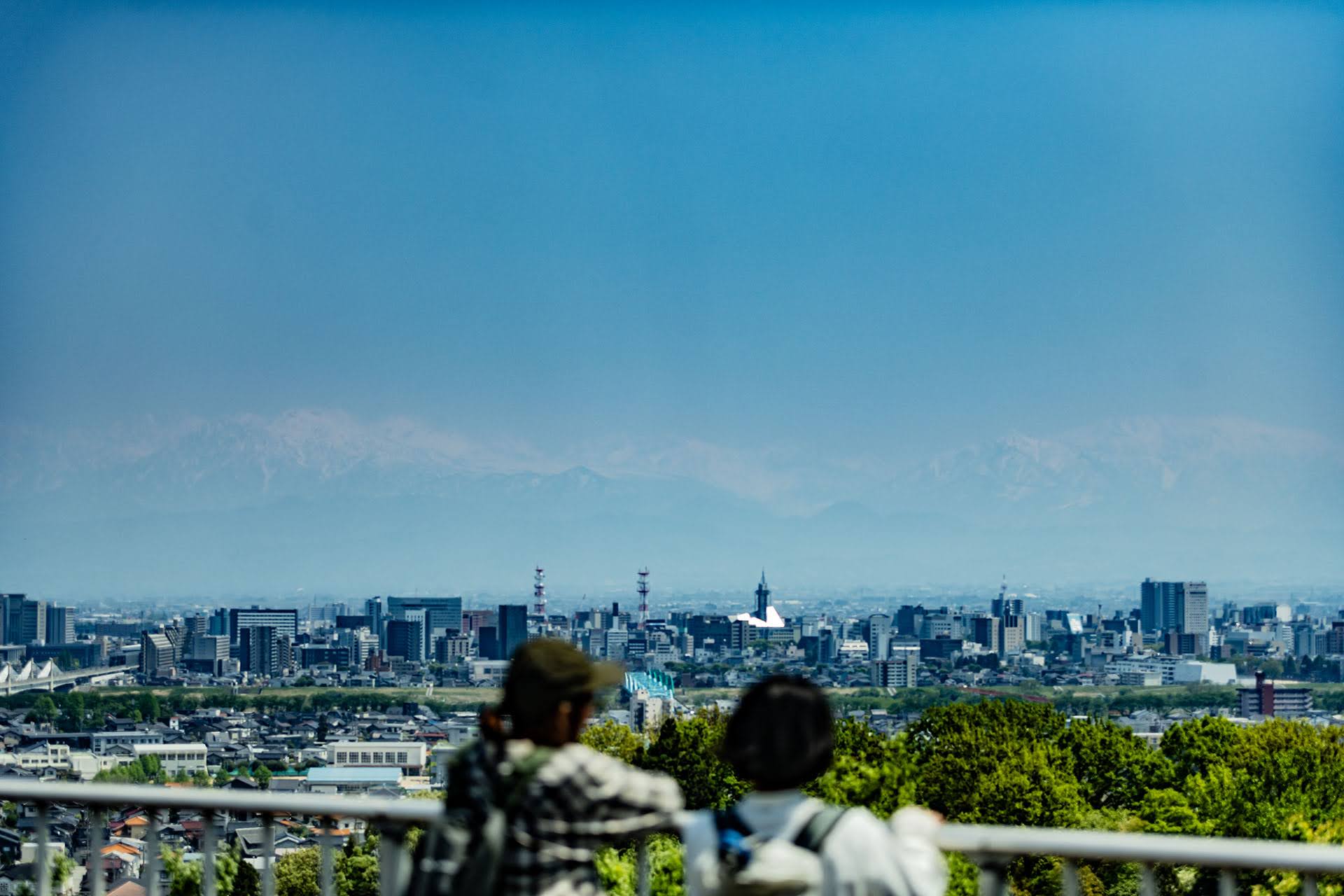 しらとり広場にある展望スポットからは、富山市の街並みと天気がよければ立山連峰も拝める。この日は残念ながらうっすらと肉眼で確認できる程度だった。今度は夜景も見てみたい。