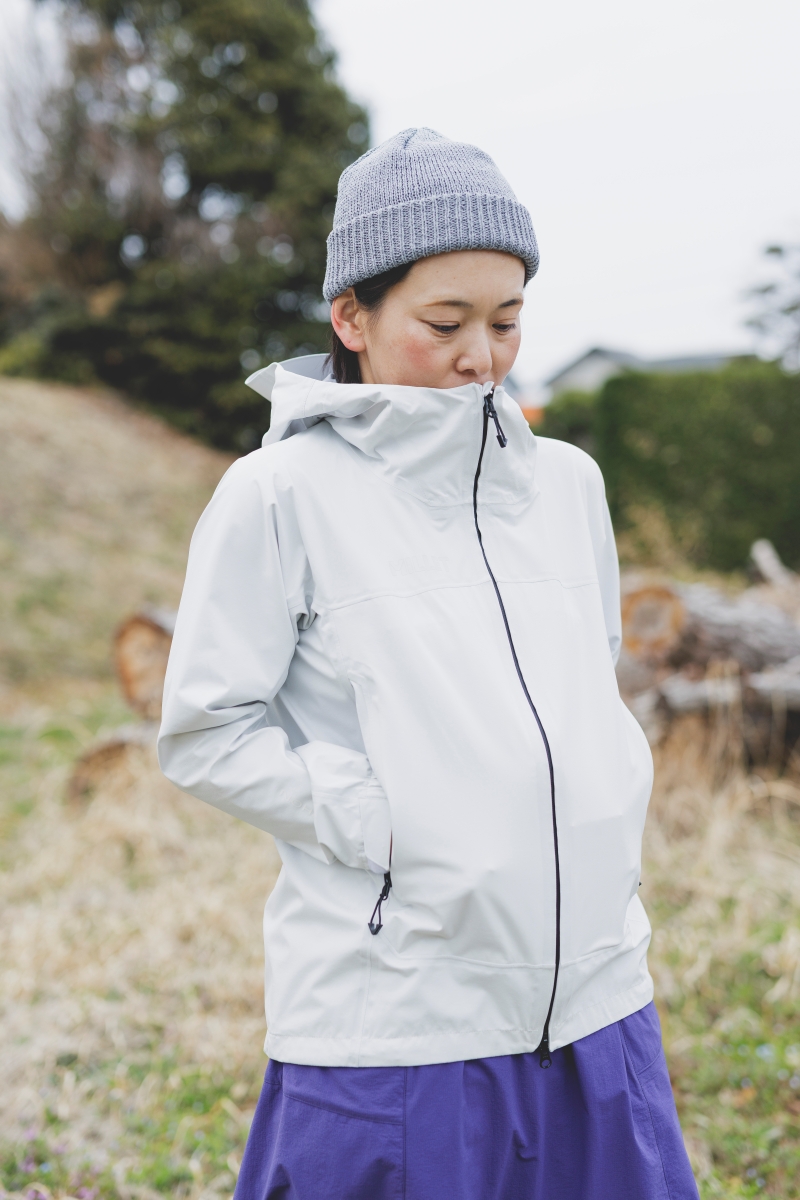 独自開発の3層防水透湿素材を採用し、高い透湿性と耐水性を備えることから、ウエア内を常にドライに保つことができるレインジャケット。動きを妨げることのない適度なストレッチ性と、裏地に配したしなやかで肌触りのよいニット地で、着心地はバツグン。ウエア内の換気ができるハンドジップポケットがあるのもうれしいポイント。