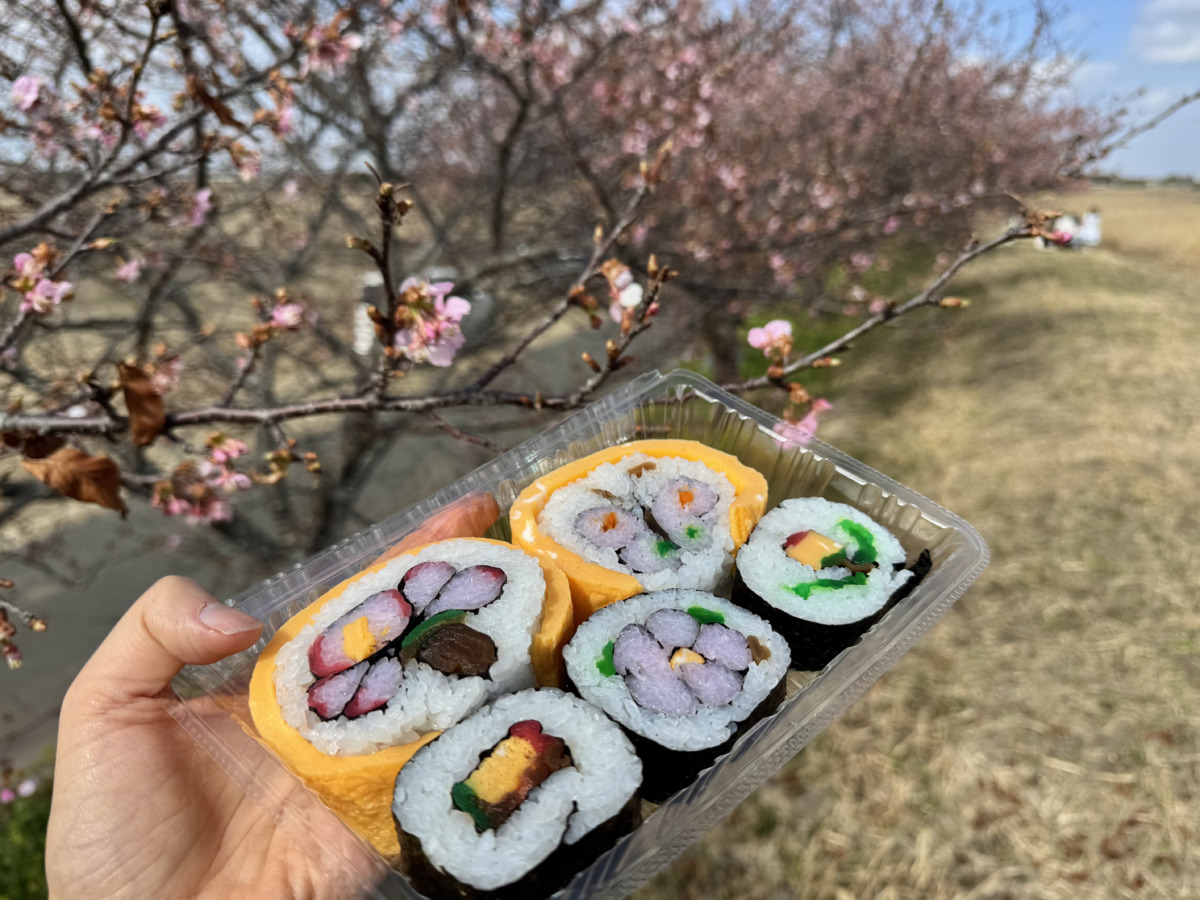 千葉県の郷土料理である、柄入りの太巻き寿司も購入。早場米として知られる地元のお米を使用。
