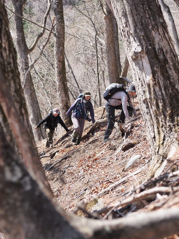 彼に導かれるまま、私たちは人が作った林道を外れた。狩猟は「動物様の都合」に合わせて自分が動く世界。山を「線」ではなく「面」や「立体」として捉え、彼らの気配を探っていくのだ。