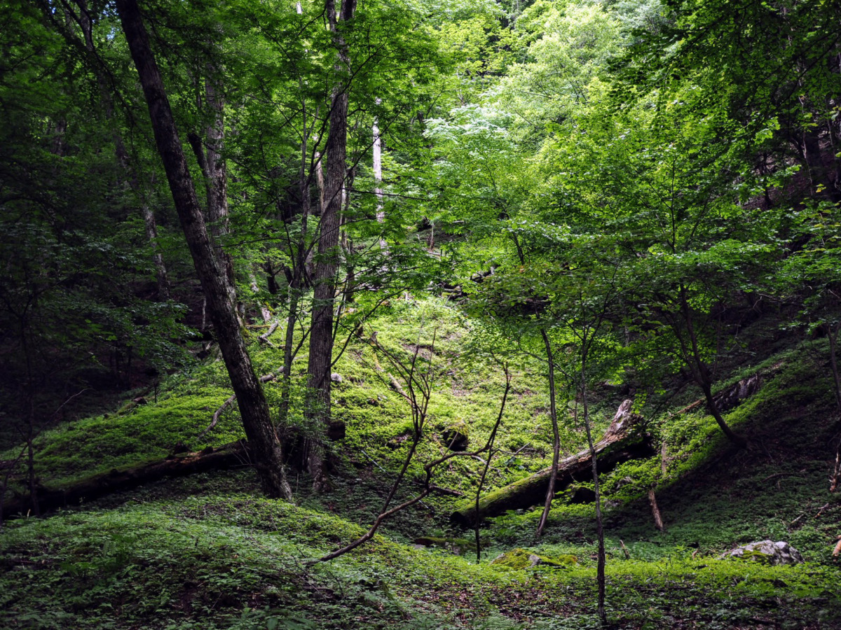 ▲苔の広がる樹林帯。
