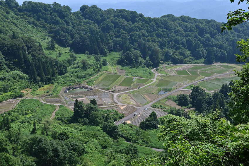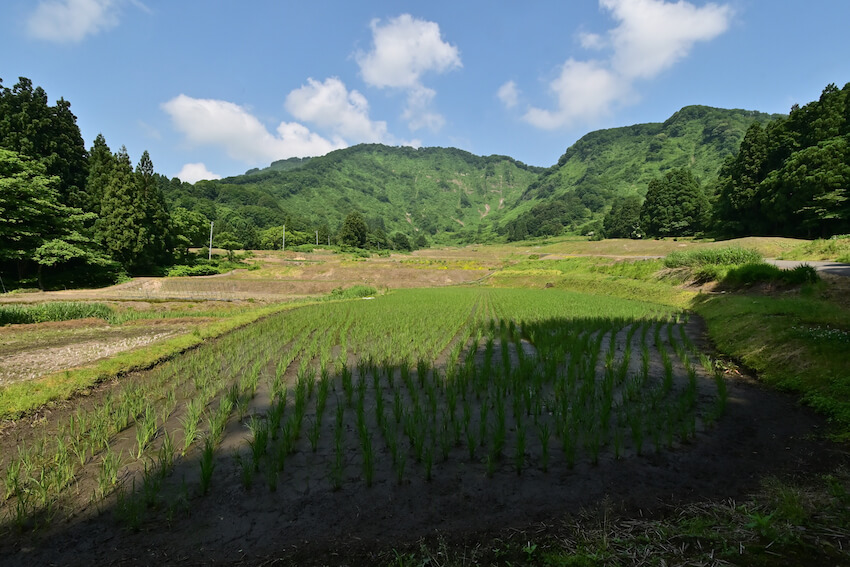 磯之辺コースは麓の棚田も見どころのひとつ。梨ノ木田の棚田と呼ばれ、梅雨の時期には青々とした水田が広がります。豊富な水は刈羽黒姫山の湧き水。このあたりは黒姫川の源流になっていて、棚田には土砂の流出や地下水の保持などの役割があるのだそう。柏崎市の高柳町事務所などでは、梨ノ木田の美しい風景を「棚田カード」にして配布しています。この棚田カードは2020年から始まった取り組みで、棚田の魅力を発信し保全につなげようというもの。全国各地の棚田地域でご当地の「棚田カード」をゲットできますので、ハイキングの折に集めてみてはいかがでしょうか。