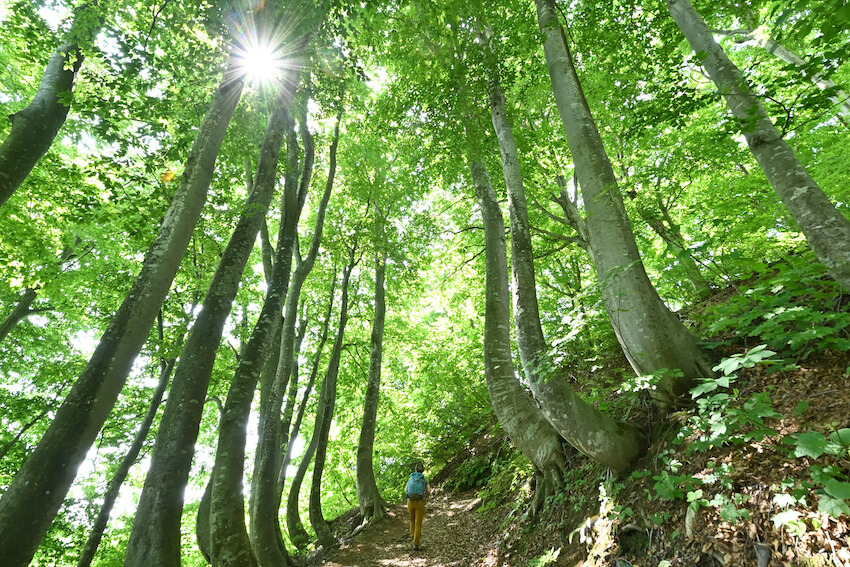 美しいブナ林や展望、麓に広がる棚田を楽しむ刈羽黒姫山。天気が不安定な時期は、見どころの多い低山がおすすめ!