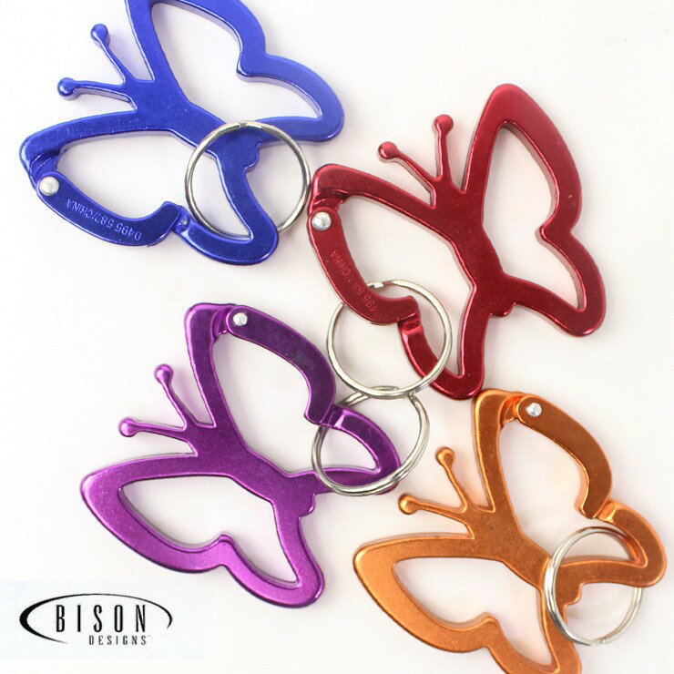 バタフライの形をしたかわいらしいファッションカラビナです。オレンジとパープル、レッドとブルーのなかから選べるので、自分の手持ちアイテムに合わせて購入できます。小物をぶらさげてキーホルダーとしての使うのはもちろん、パンツスタイルとも相性抜群です。バイソンデザインには他にも個性的なカラビナがそろっているので、一緒にチェックしてみるのもおすすめです。
