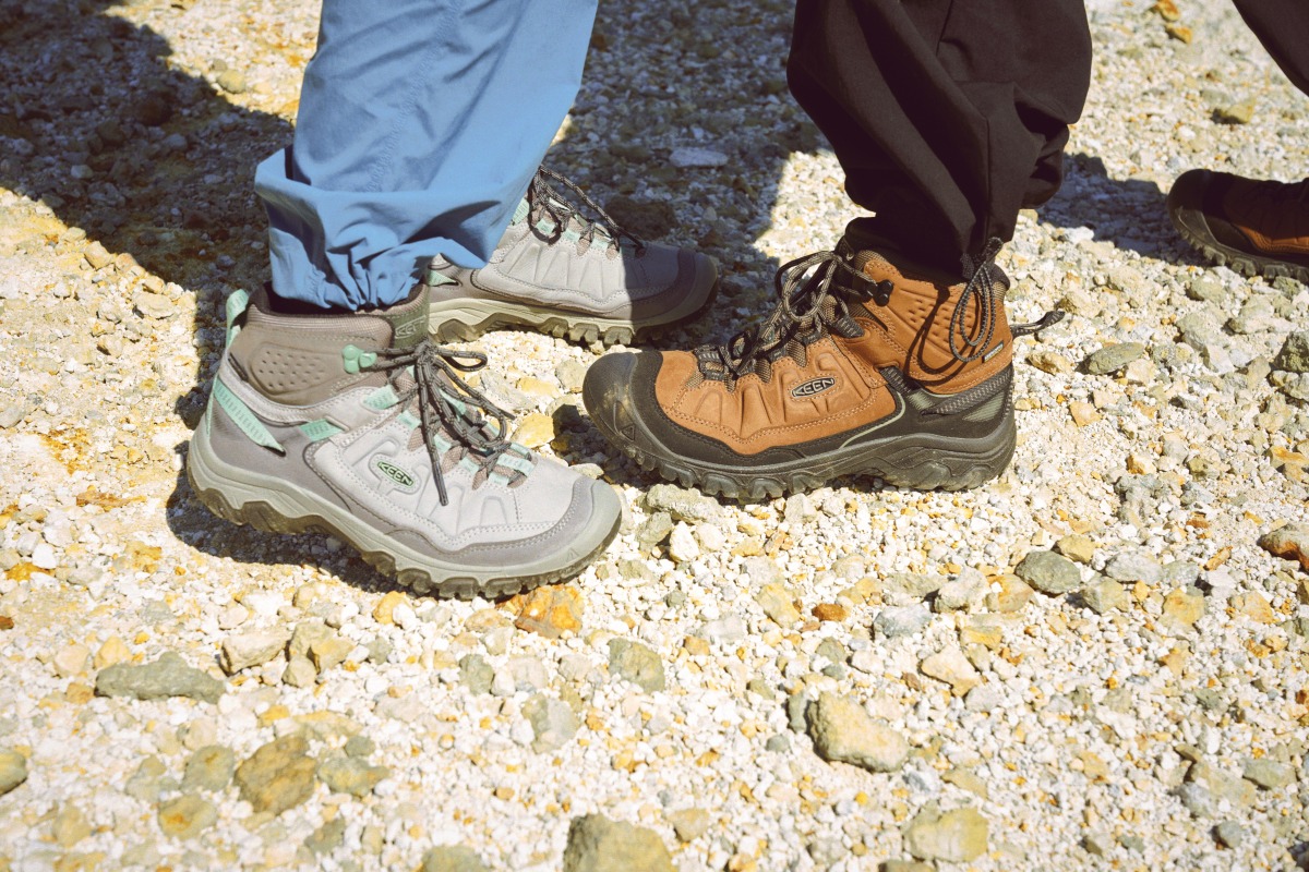 キーンのフラッグシップモデルである「ターギー」シリーズは、足入れしやすい構造やつま先を保護するトゥ・プロテクションなど、山歩き初心者からベテランの人まで使いやすいトレッキングシューズ。その新作である「TARGHEE IV」は、足入れしやすいかたちはそのままに、アッパー部分の素材や設計を見直し。より足になじむつくりに仕上げられています。