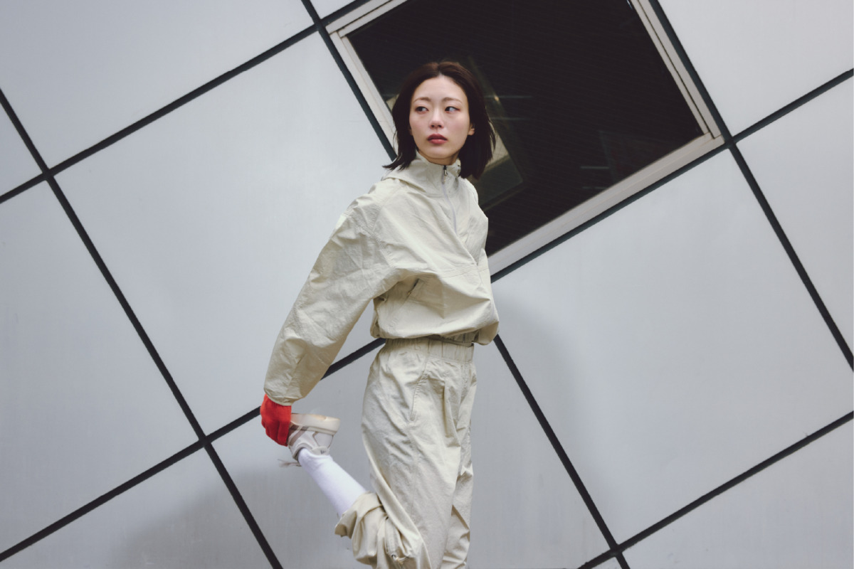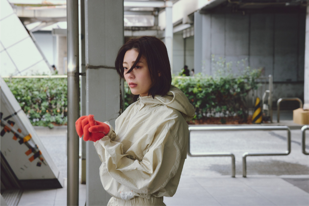 「都会的なコンクリートの背景には、今回のadidasのようなシャープなコーディネートがよく映えますよね。メンズ・レディスを問わず、セットアップで着こなすのが最大のポイントかなと。ベースをシャープにまとめつつ、小物やシューズでポップな色味を差し込むことで、コーディネートの幅をぐっと広げることができます」