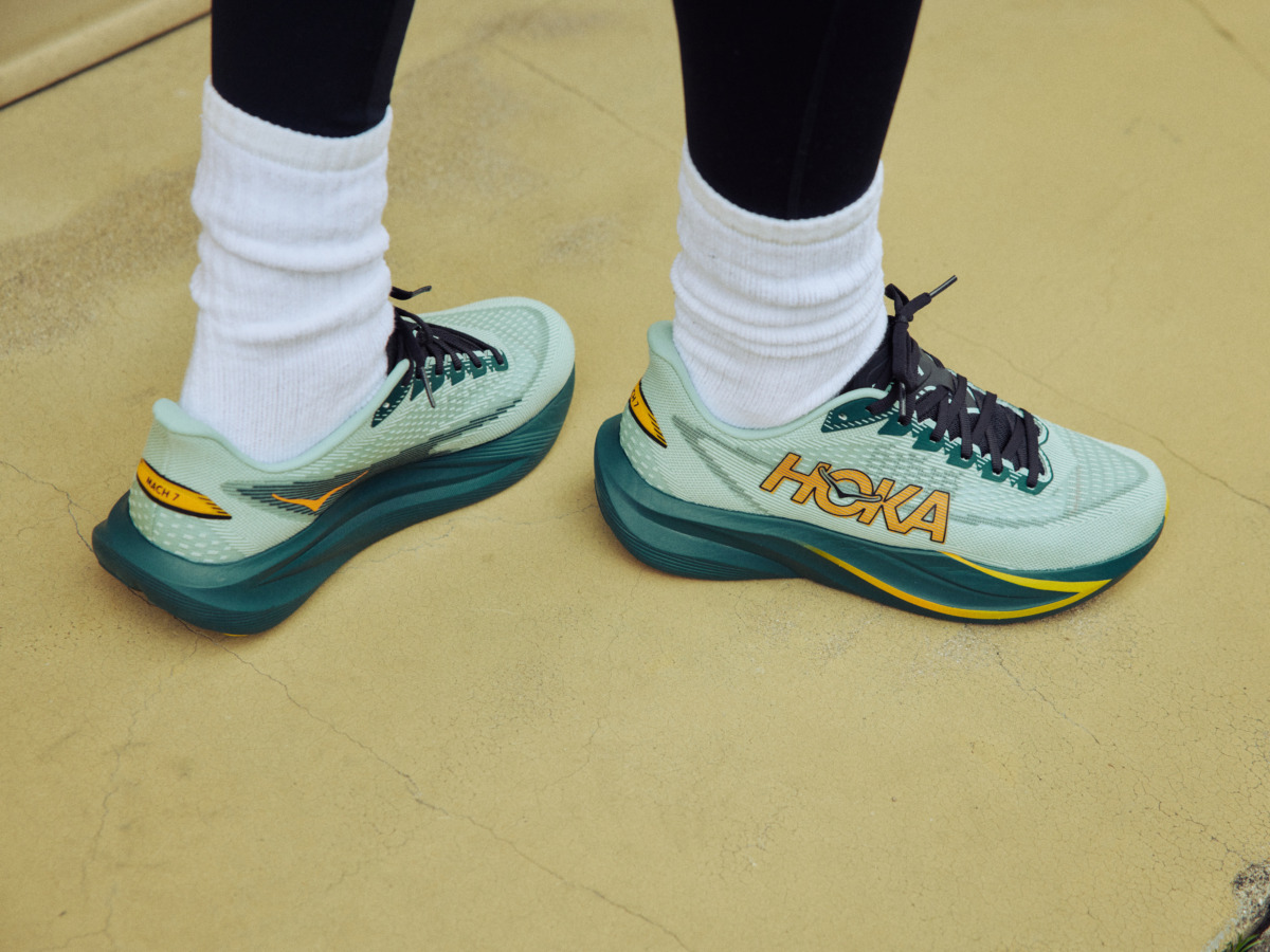 足元を彩るのは、その名の通り、スピード感を表す鮮烈なカラーリングが目を引く、最新モデルの「Mach 7(マッハ 7)」。