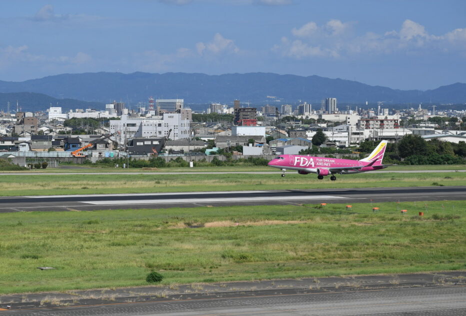 東海道新幹線「名古屋」駅から、タクシーまたは、「あおい交通」の空港直行バスで約20分ほどにある「県営名古屋空港」。愛知万博の開催に合わせて「中部国際空港 セントレア」が開港する以前までは、国際線も受け入れていた名古屋空港は、現在国内線を中心としたリージョナル(地域)空港として、客席数が50~100席の小型ジェット機利用されるローカル空港となっている。