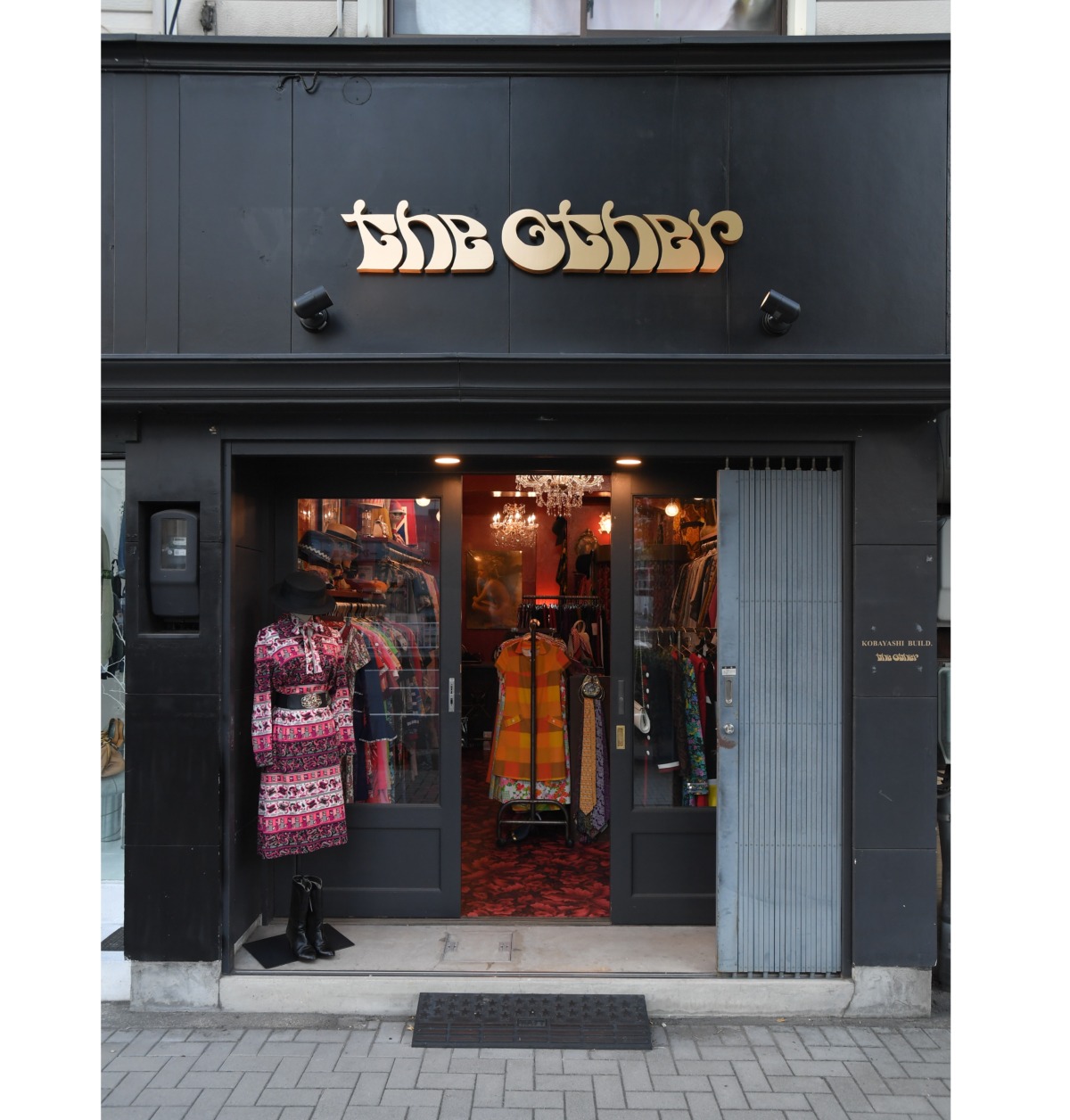 意識せずに歩くと通り過ぎてしまいそうな間口の狭い、大通りに面したビルの一階、マットなブラックのシンプルな外観にゴールドの看板、真っ赤なインテリアと所狭しと並べられた60年~70年代のファッションアイテムが印象的な「the other」の外観。誰もがフラッと入りやすい敷居が低いショップとはさすがに言い難いが、ちょっぴり勇気を出して店内へ。