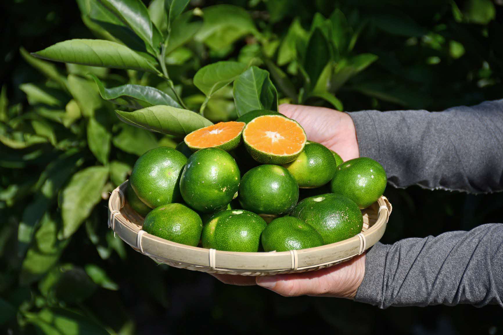 ダイダイ(熱海市) 熱海市のダイダイ農家では高齢化が進み、収穫時期を迎えても収穫されないダイダイが増えています。この課題を受け、熱海駅の社員が実際に収穫を手伝ったものを使用しています。