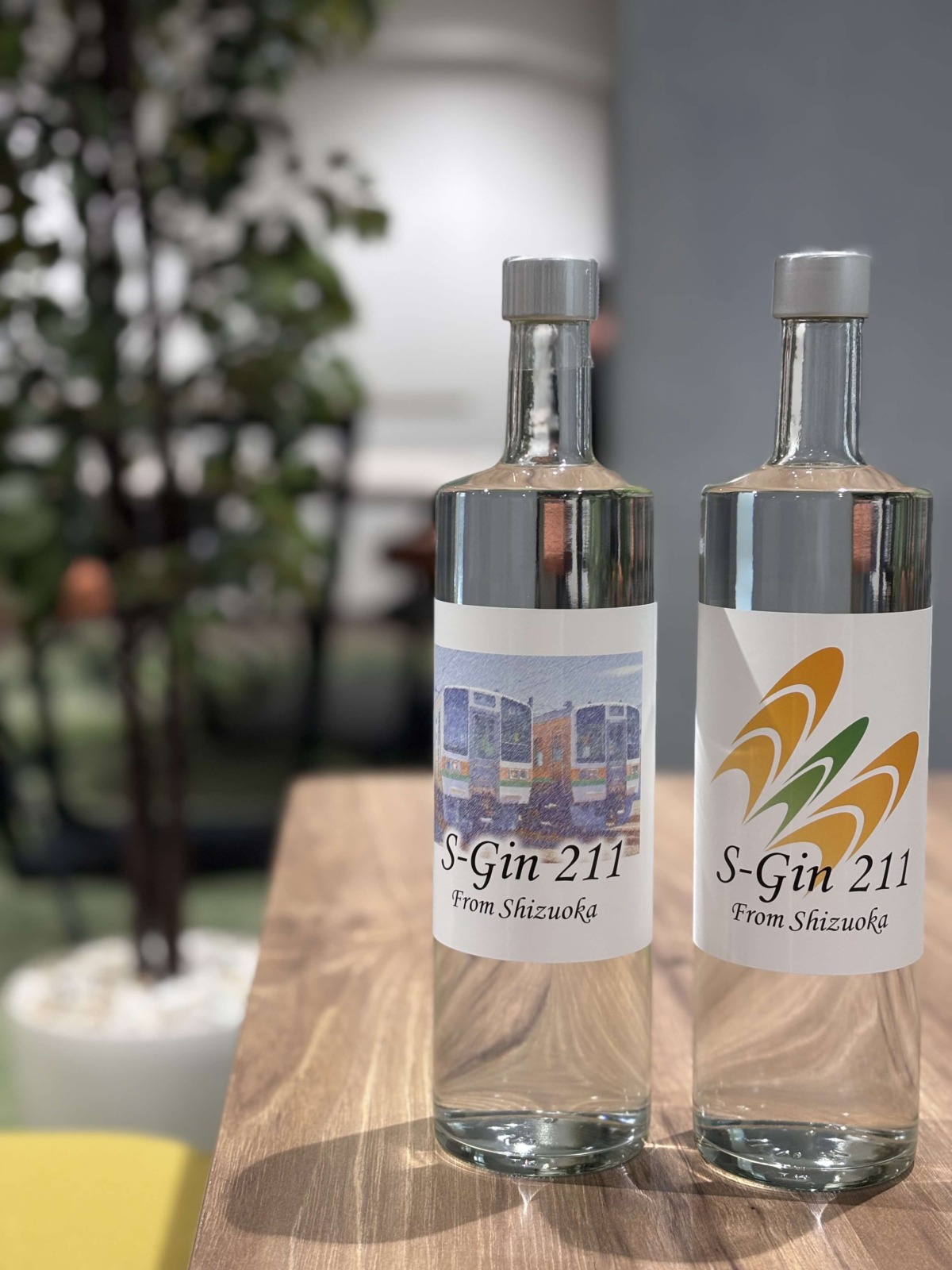商品名「S-Gin 211」の「S」には、「Shizuoka(静岡)」と「Sustainable(サスティナブル)」の2つの意味があります。 また、211系電車は社内で「SS編成」(3両編成)、「GG編成」(2両編成)と呼ばれていました。この呼称から着想を得て「S-Gin」と命名。ラベルのデザインにも、SS編成・GG編成をオマージュした要素が取り入れられています。